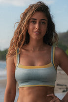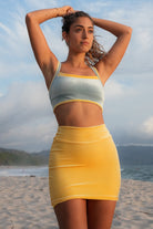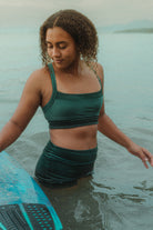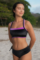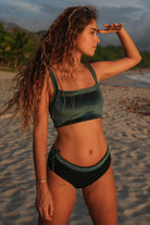 The Sporty Top features excellent bust support, removable sport cup inserts, and ultra-soft double lining for all your favorite movement activities. Perfect for surfing big waves, practicing yoga, pilates, or training at the gym, the Sport Top is handcrafted from our new sustainable iridescent velvet fabric that shimmers in different color tones in the sunlight.